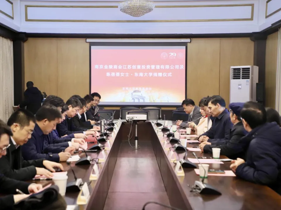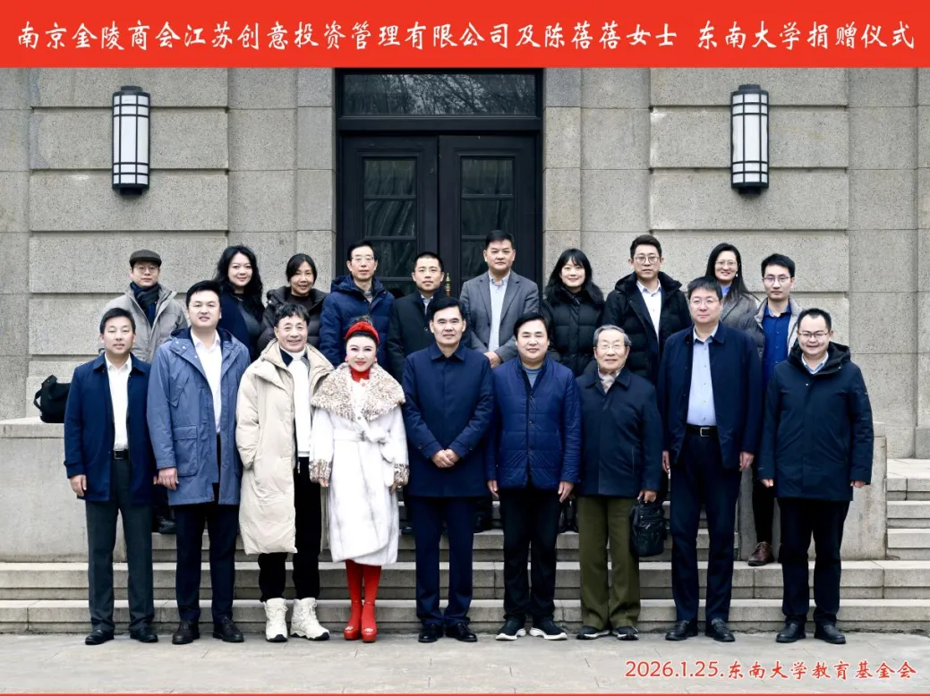 2026年1月25日上午,南京金陵商会、江苏创意投资管理有限公司及陈蓓蓓女士向东南大学法学院捐赠文化建设项目捐赠仪式,在东南大学四牌楼校区礼堂二楼会议室隆重举行。此次捐赠旨在助力法学院文化建设提质增效,为师生营造更优质的育人环境与学术氛围。
