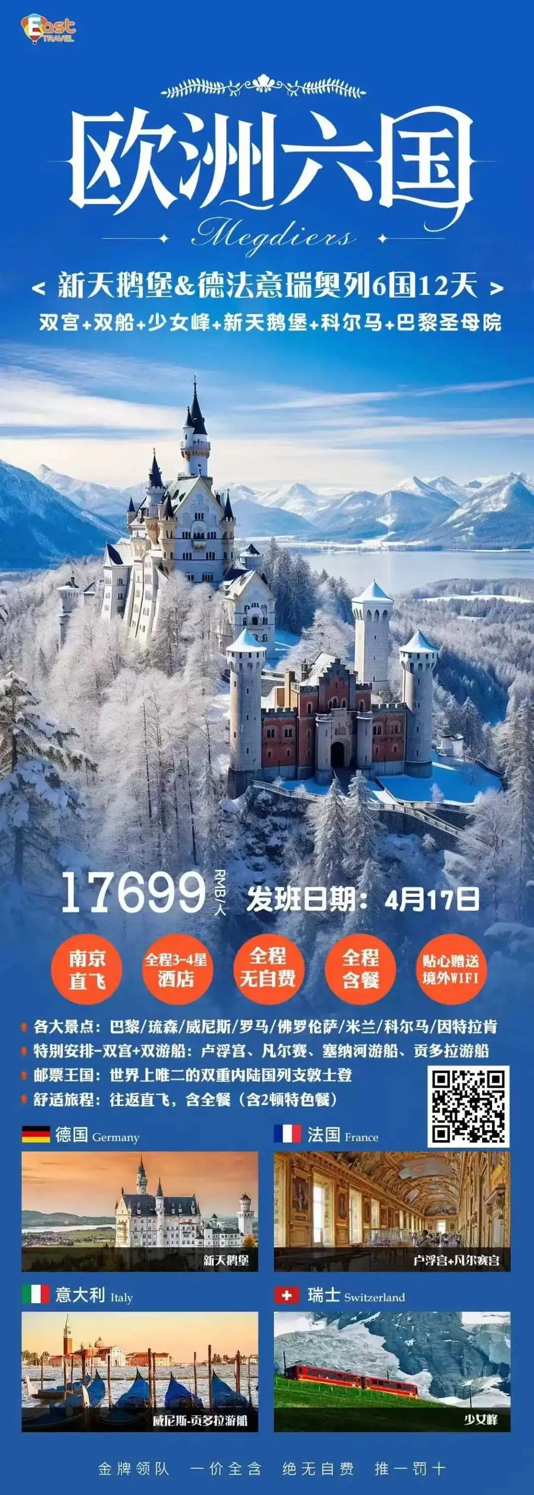 4月17日【欧洲六国】。 💥南京 新鹅天堡+德法意奥瑞列10晚12日