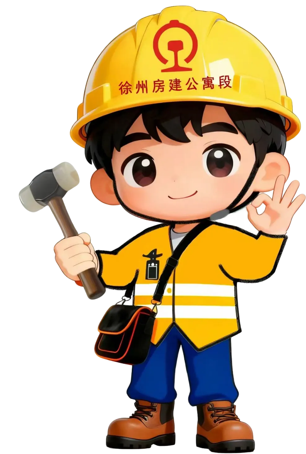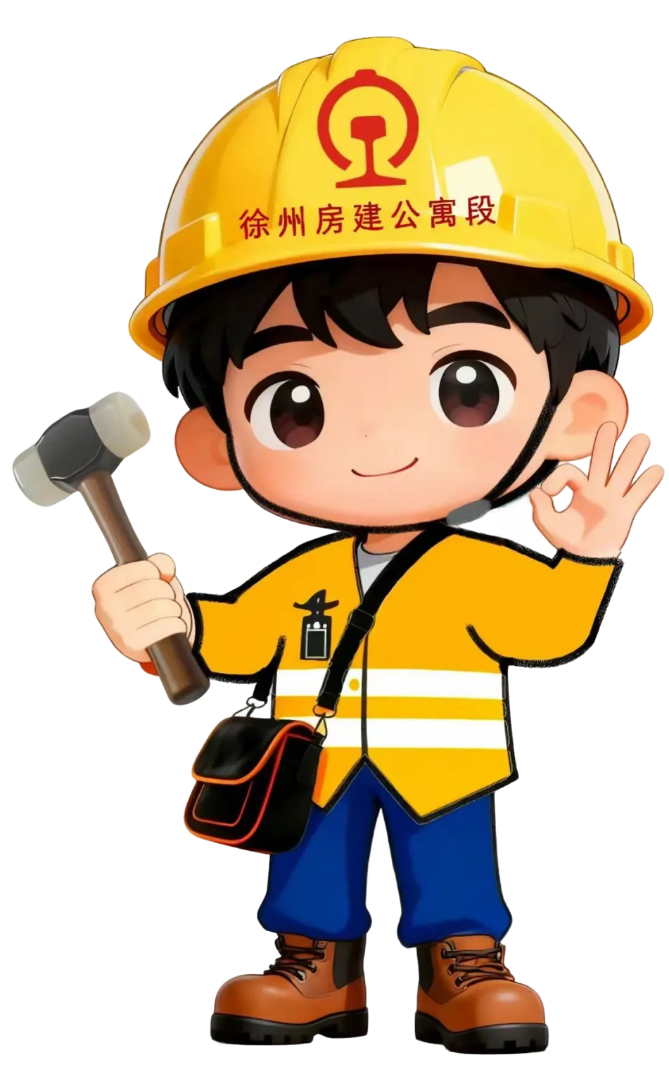 ④ 手势:比出“OK”手势,寓意“安全保障OK、隐患排查到位”,传递房建专业的严谨与可靠,彰显“干标准活”的专业态度。
