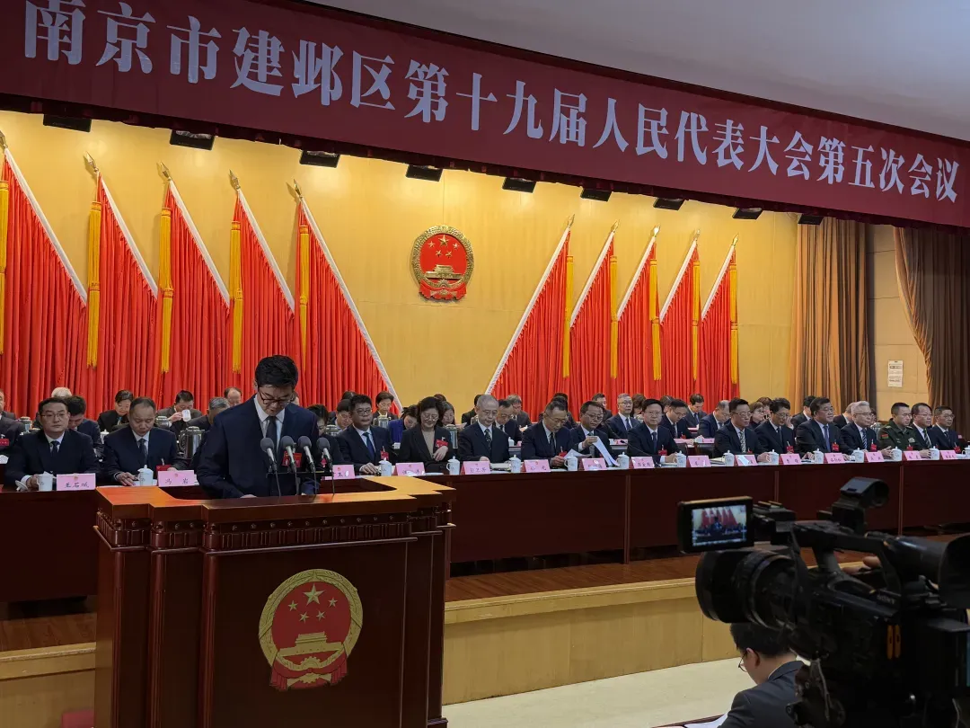 建邺区区长贾晨 在做政府工作报告