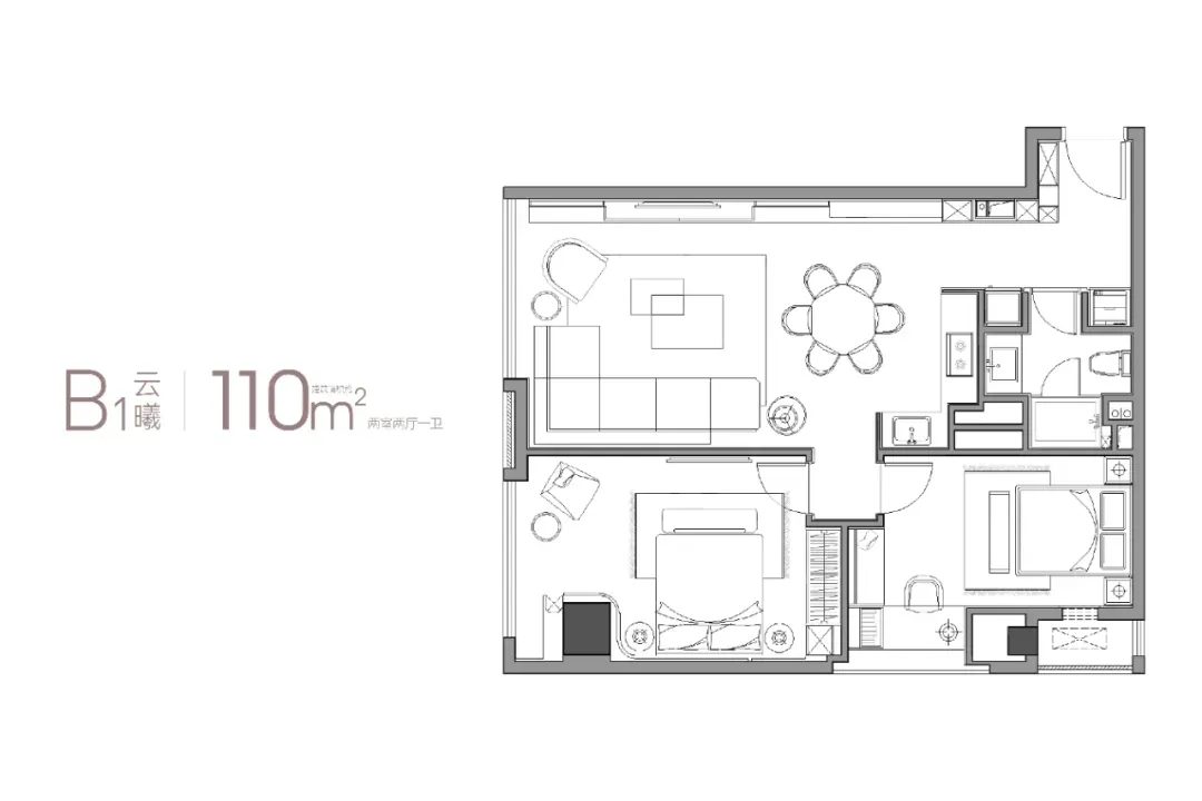 建面约110㎡户型,两室设计的空间格局,十分方正;超大横厅自带超级采光、巨幕光影;落地玻璃窗,带来无界视野诗意延伸。