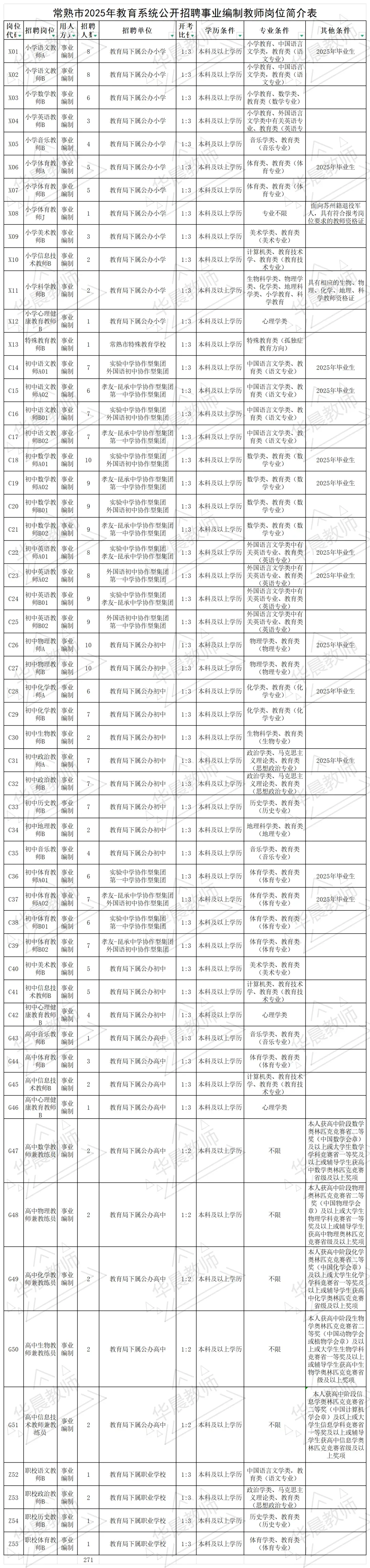 常熟市2025年教育系统公开招聘事业编制教师公告