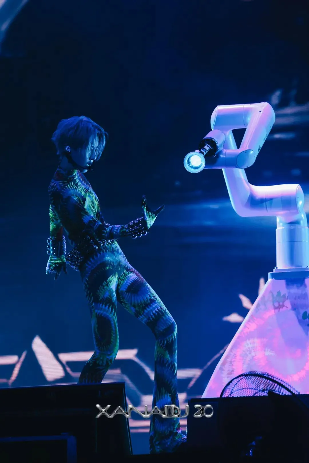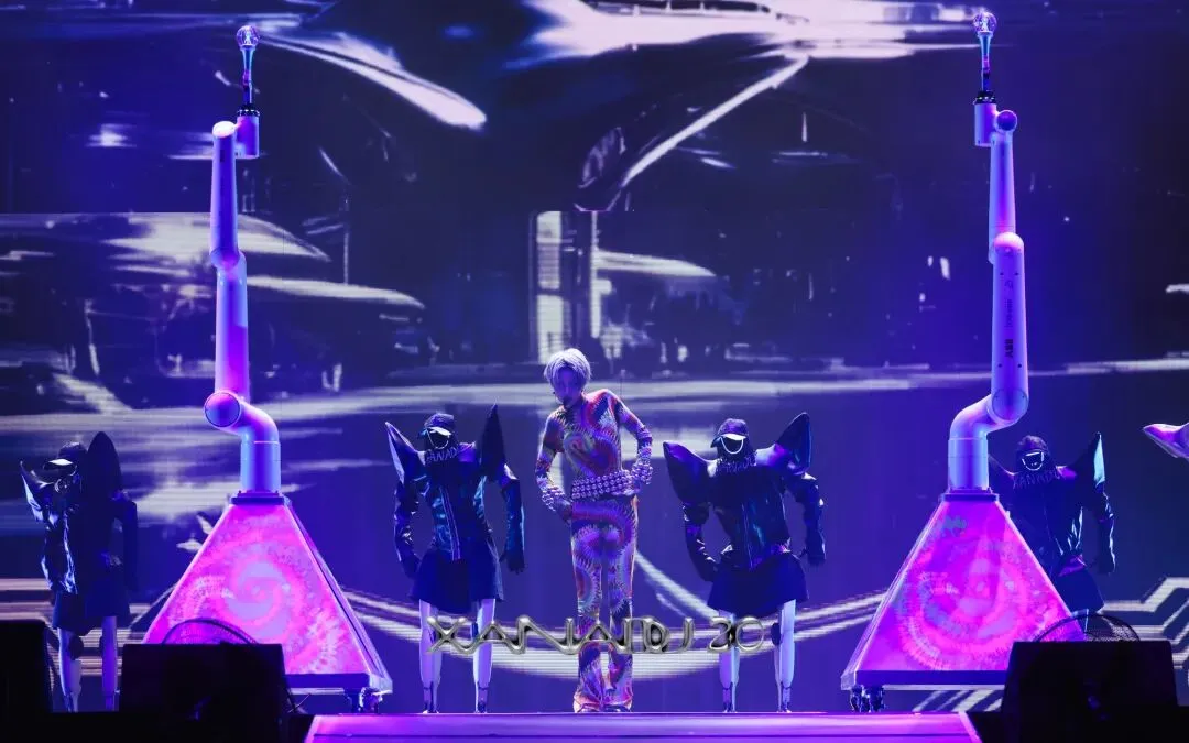 渐变色彩随舞步流转,舞台便成了流动的涂鸦调色盘。@刘雨昕 携手宇树人形机器人G1、ABB全新协作机器人PoWa系列同频共舞,强烈节奏与机械的动感相得益彰,在舞台上实现传统与现代的碰撞、过去与未来的对话。一曲《Overdrive》畅快收尾,在Afro律动中,将舞台的马力再度加满,在苏州的夜晚再度掀起视听新潮。