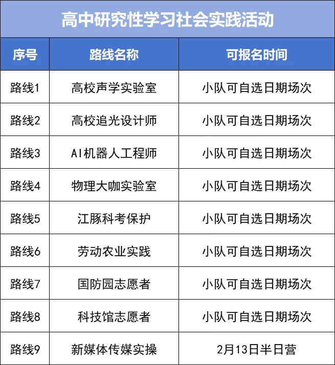 ③费用含:社会实践证书、实践装备、课程费、讲解费、执行费等成本费用;部分场次含场地费、活动意外险等;