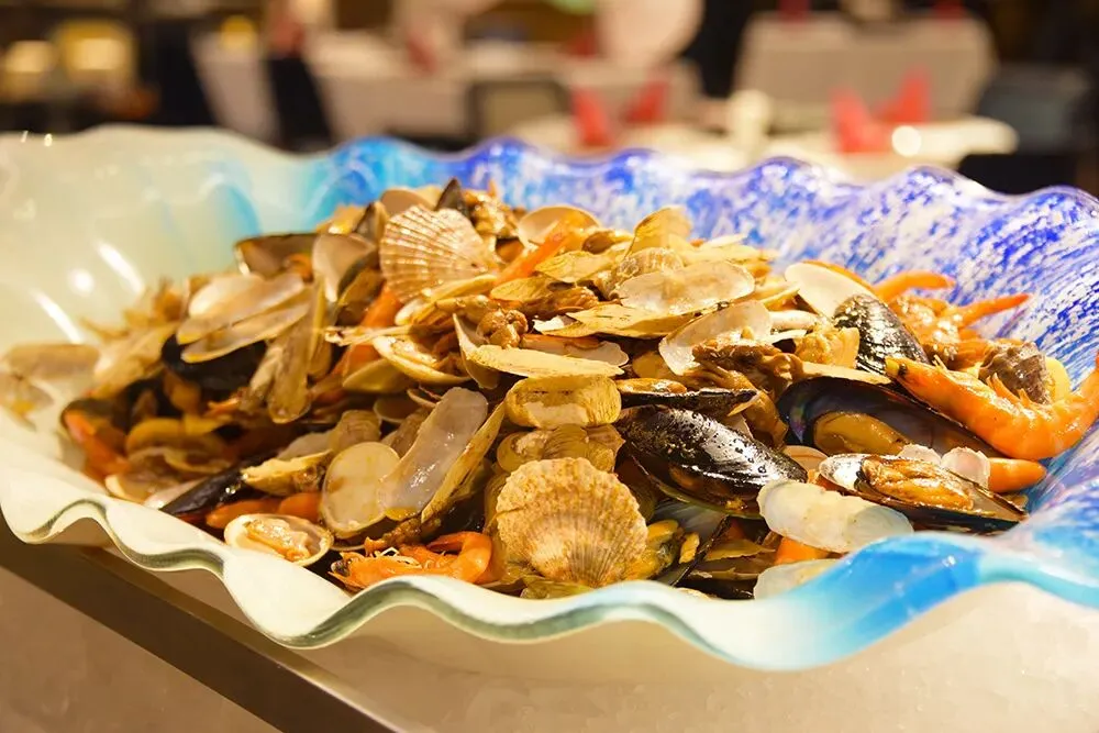 主打法餐和海鲜的自助晚餐值得一试,南美甜虾、雪蟹腿、海螺、青口贝等,任你畅吃;