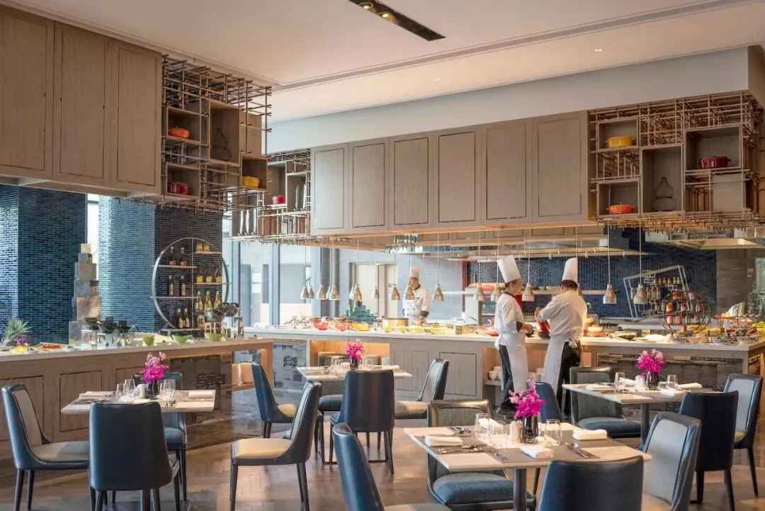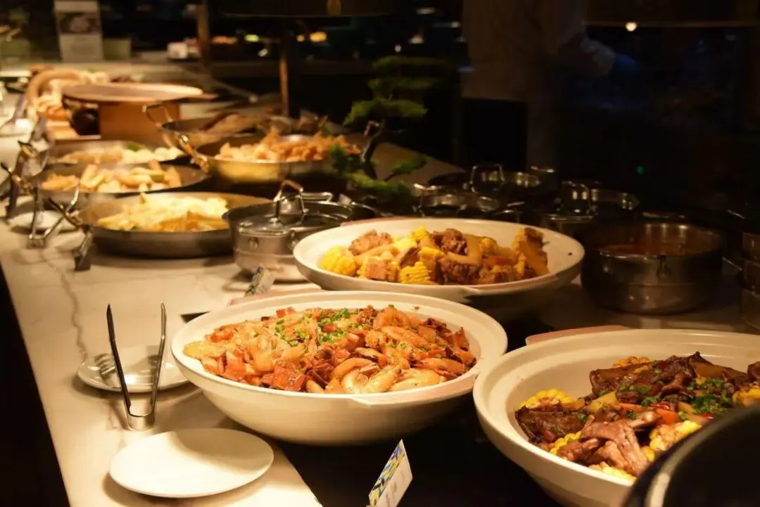 既有中式传统粤菜、苏式菜肴,也有明档烧烤、意大利传统披萨、现场意大利面制作等风味美食,每日更有现场派送,一周七天惊喜不重样。
