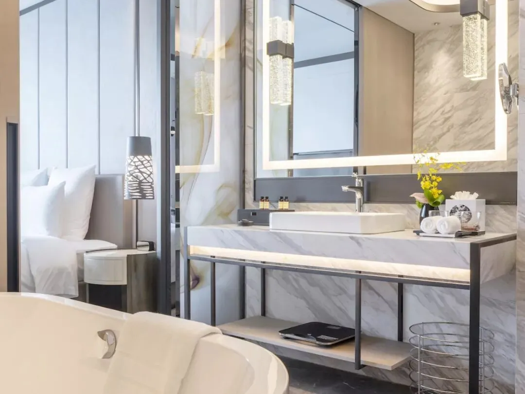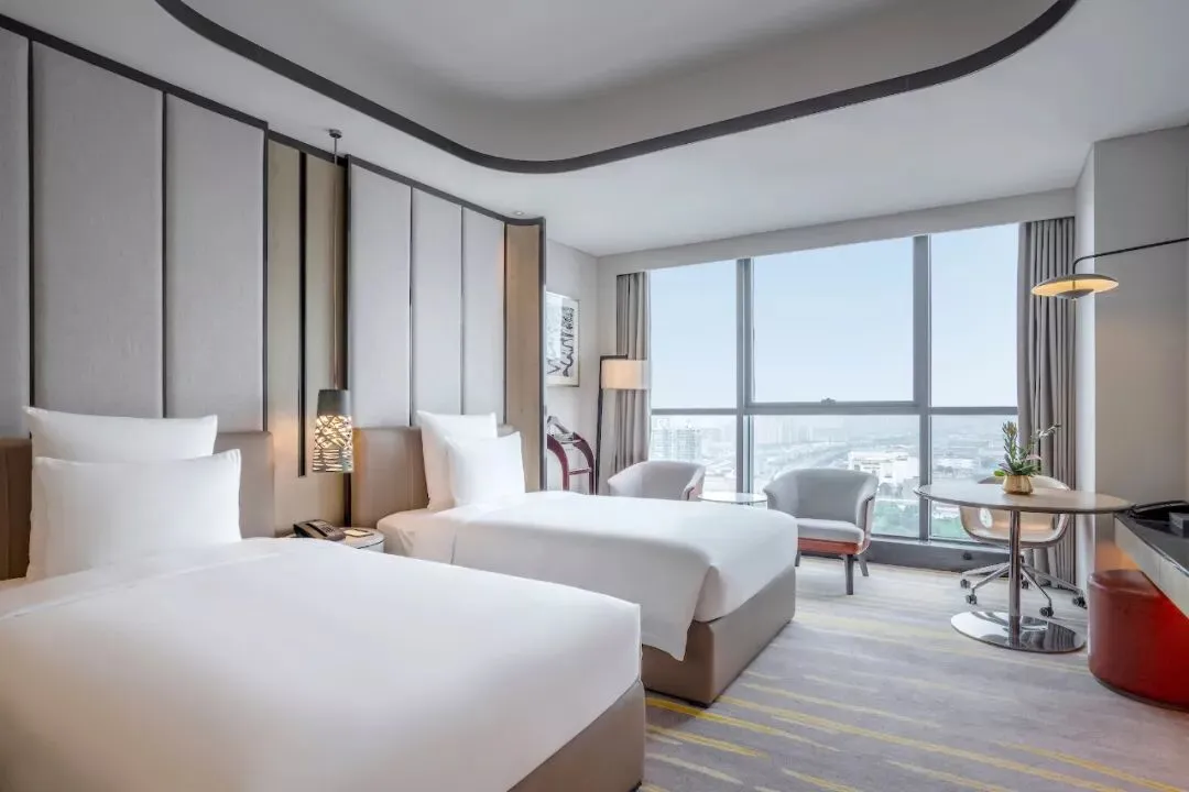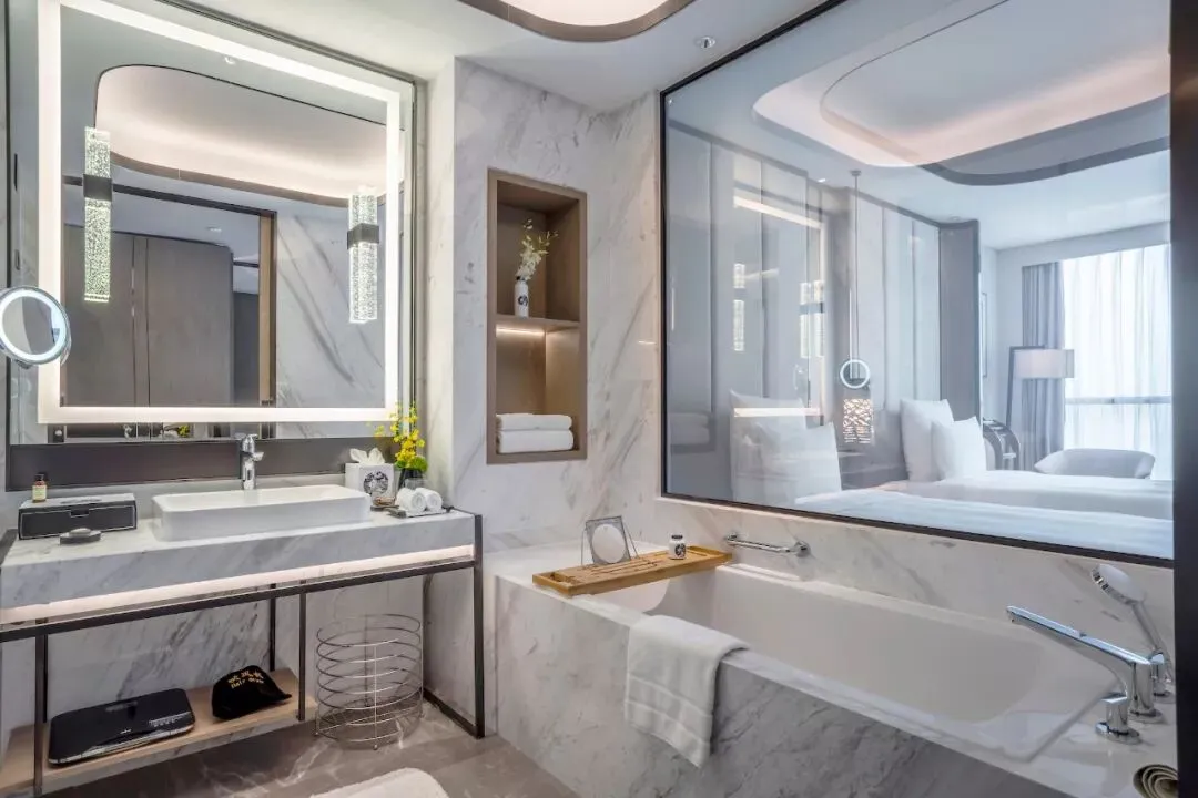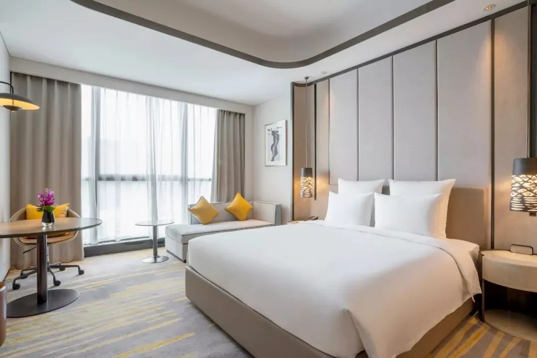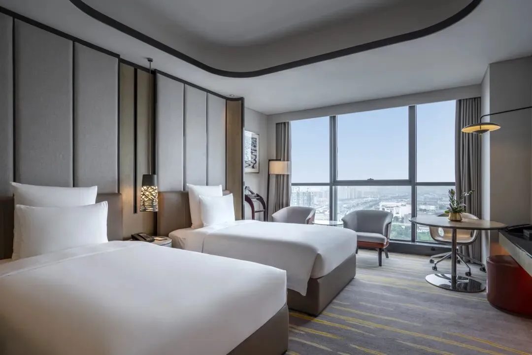 客房共为413间,现代风格辅以新中式简约,兼具温馨和科技性能。