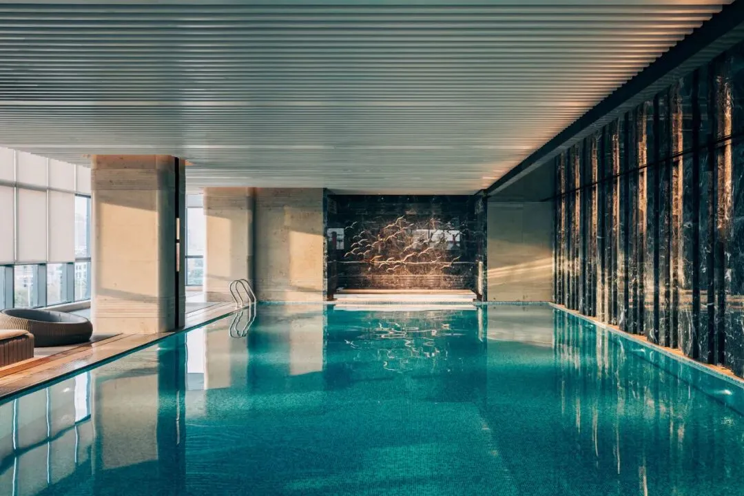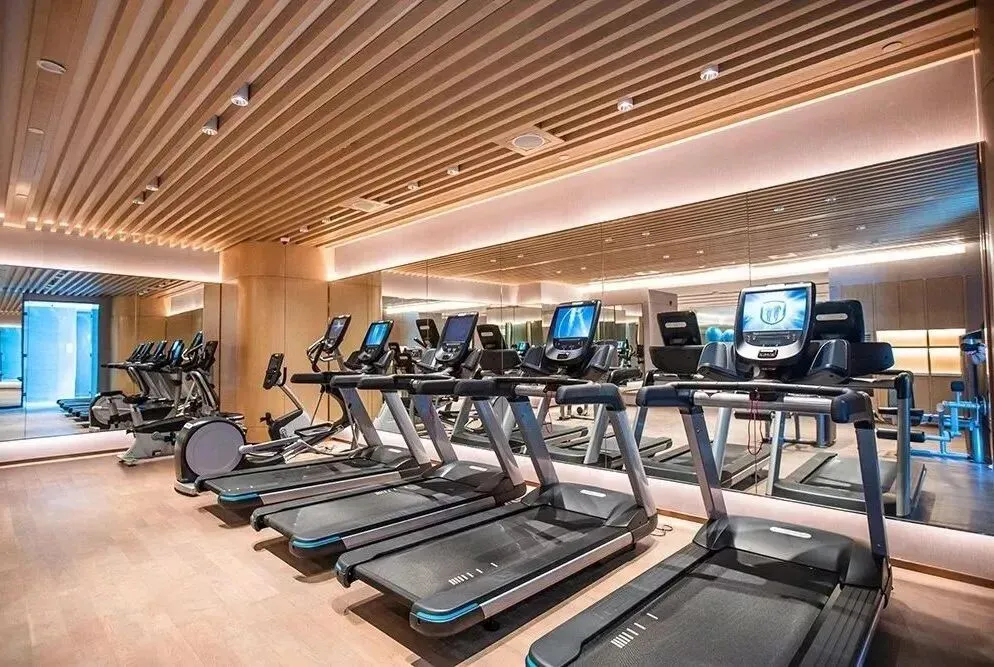 除了餐厅,位于酒店5楼的健身房及泳池,面积有650㎡,有设备齐全的健身房和瑜伽室,配备按摩池的室内游泳池和蒸汽浴室、淋浴房。