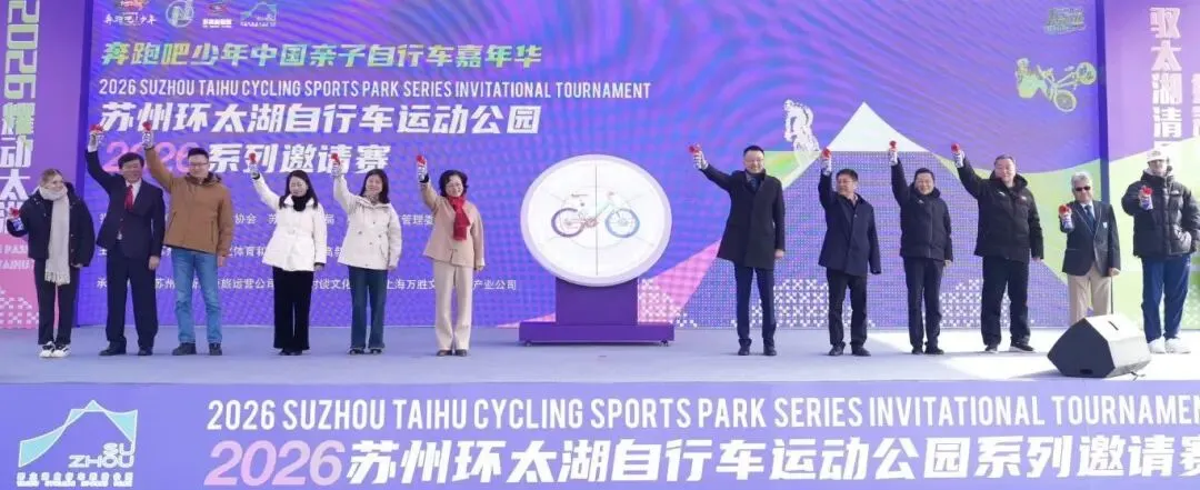 同日,苏州环太湖自行车运动公园正式开园,“奔跑吧少年”中国亲子自行车嘉年华暨2026苏州环太湖自行车运动公园系列邀请赛同步启幕,将高水平赛事与地标级运动公园深度融合,为区域文体旅融合创新发展注入全新活力。