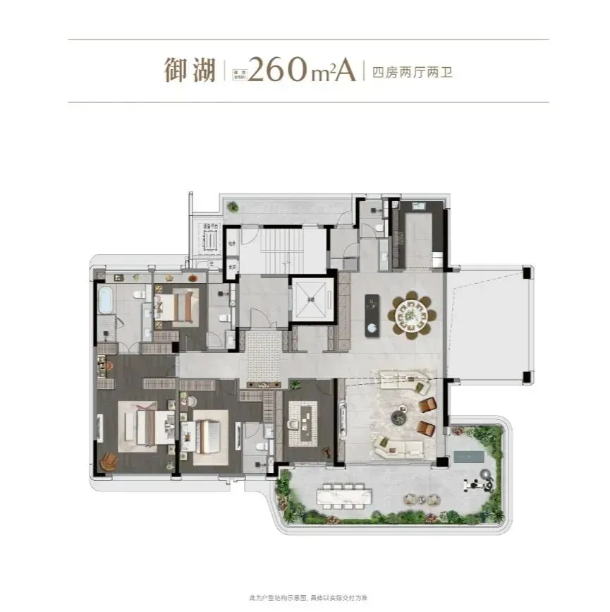建面约260㎡偶数层户型