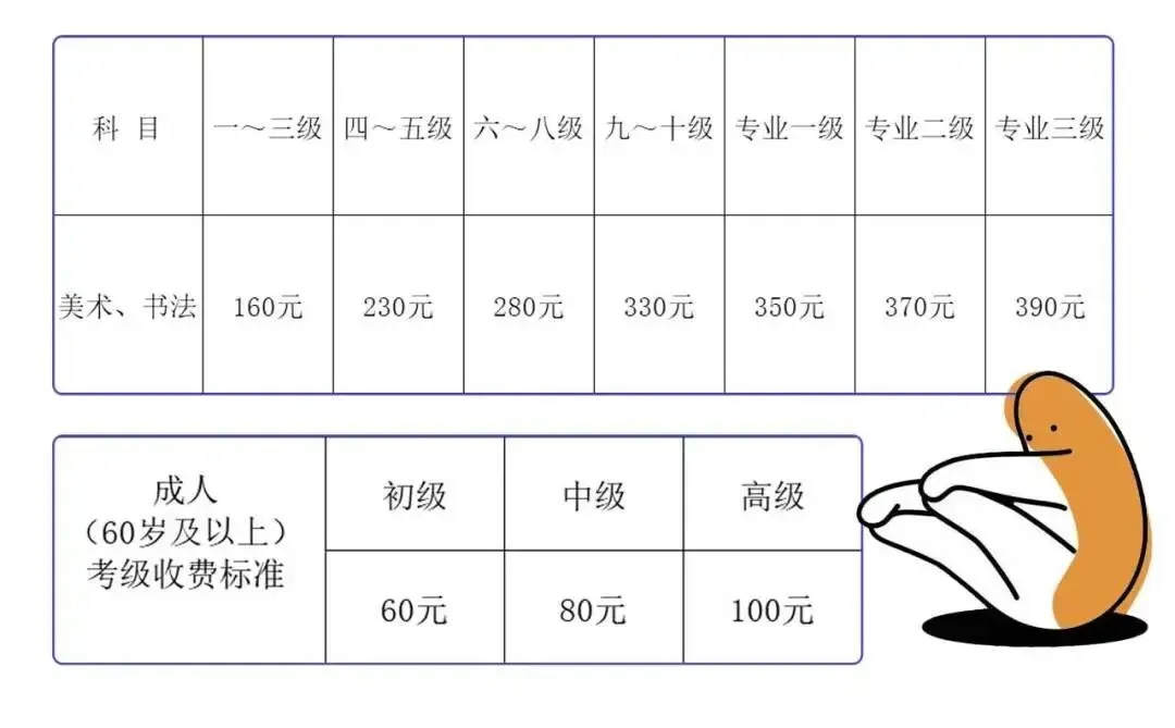收费依据:文化和旅游部、国家发展改革委《关于放开社会艺术水平考级收费标准的的通知》(文科技发[2015]4号)。