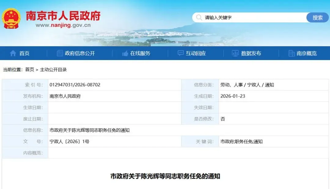 近日,苏州市政府网站公布一批人事调整,具体如下: