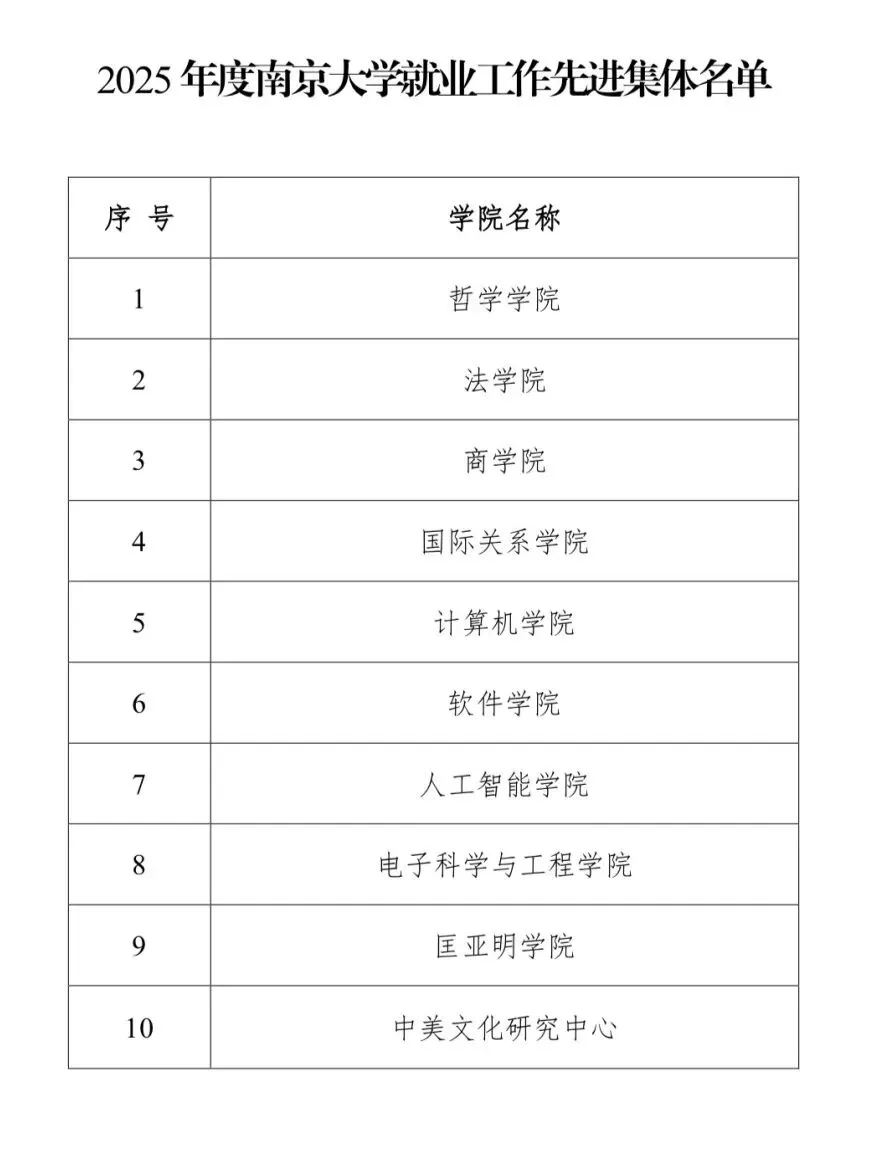 2026年1月27日,为表彰在2025年度学生就业工作中涌现出的一大批优秀集体和个人,南京大学决定授予包括中美中心在内的10个学院“就业工作先进集体”称号。