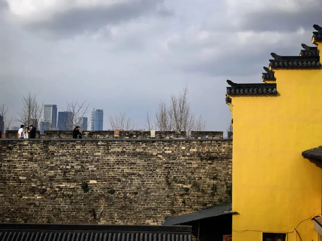 登至山顶,明城墙的轮廓尽收眼底,青砖黛瓦枕着天光,景致壮阔。