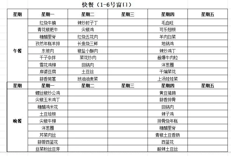 苏州市善耕实验小学校第二十三周学生营养菜单