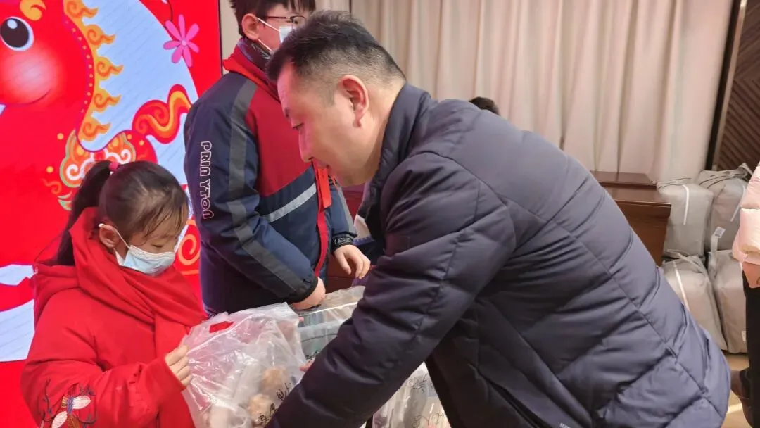 启动仪式现场,沛县新联会会员代表将满载心意的“暖冬爱心包”逐一递到孩子们手中,礼包内不仅包含厚实的冬衣、保暖围巾、实用文具等生活学习必需品,更特别融入了沛县汉文化元素,让传统文化的温度与物质关怀同步传递。