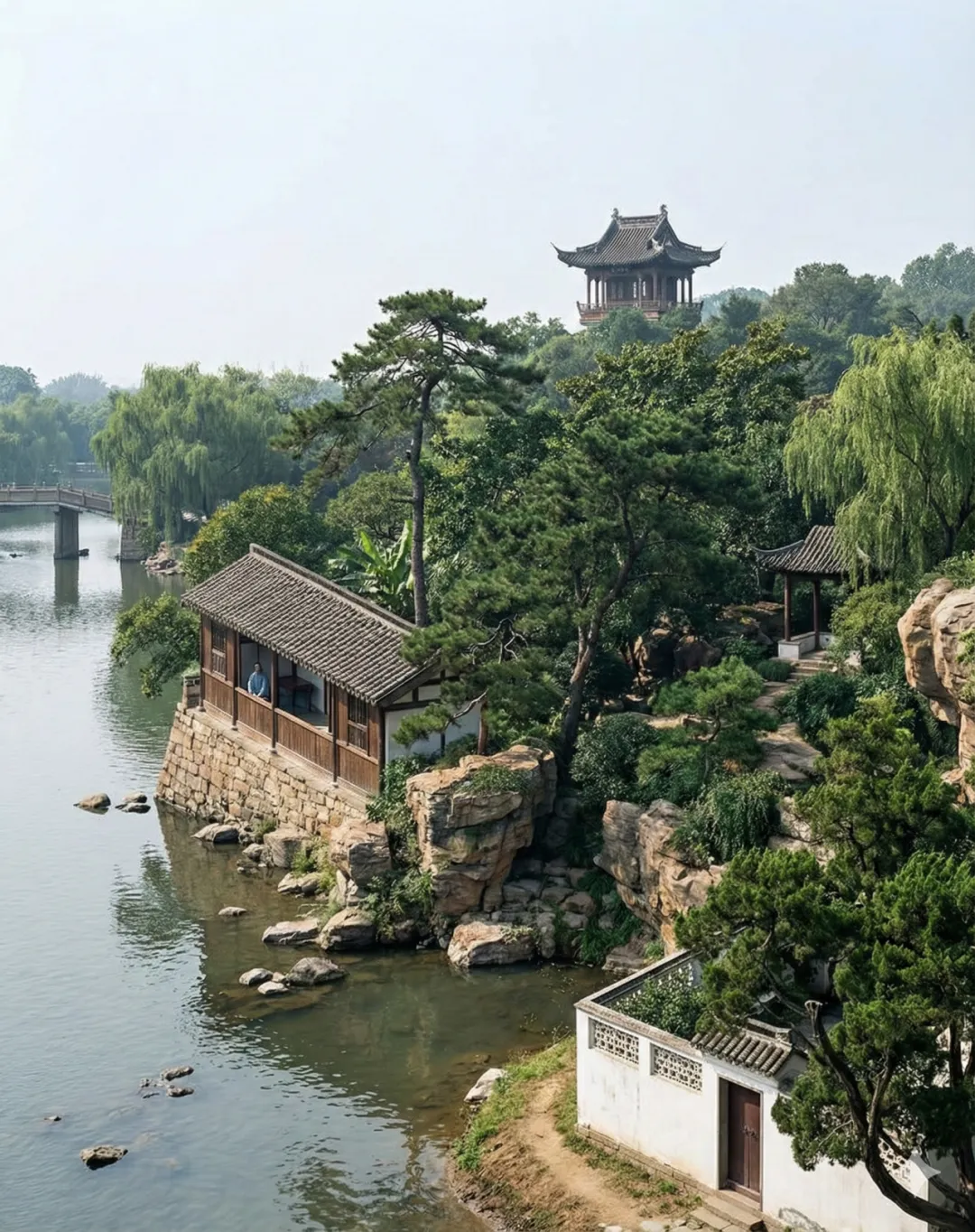 文徵明曾画《游吴氏东庄图》,一页纸里装进桥、池、亭与点点人影,画面很安静,背后却是热闹的人情:今天在你家,明天在他家,园林是露天客厅,诗文书画在这里流通。