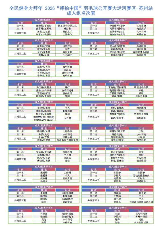 羽耀姑苏,热爱不散!2026“挥拍中国”羽毛球公开赛-苏州站圆满收官
