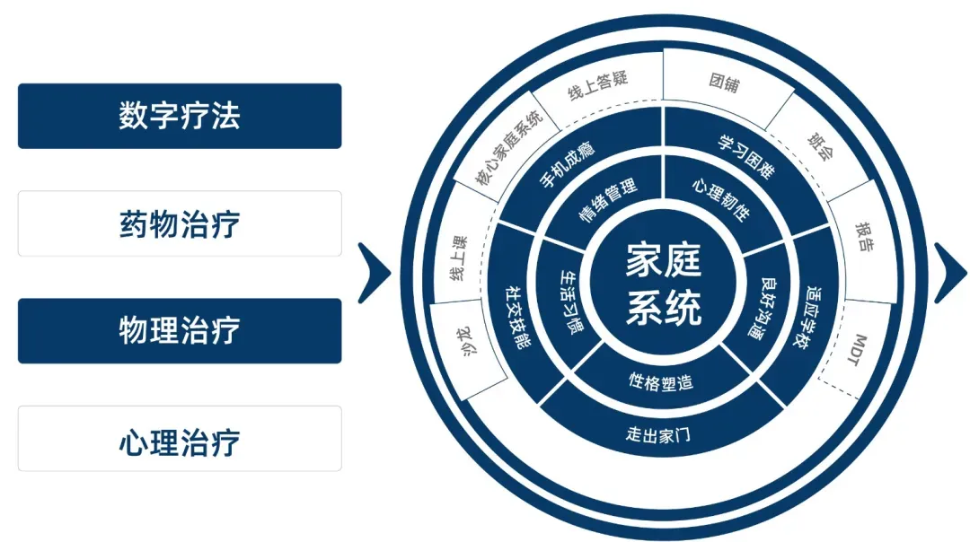 苏州姑苏优眠医院重视青少年儿童精神心理健康,针对儿童青少年人群,借鉴德国前沿“核心家庭系统”(Nuclear Family System)理念,实现院内外一体化,协助家庭构建“家校社医”全方位的支持系统,实现干预方案及时调整,巩固疗效,有效减少复发,帮助孩子重新找回学习与生活的乐趣。