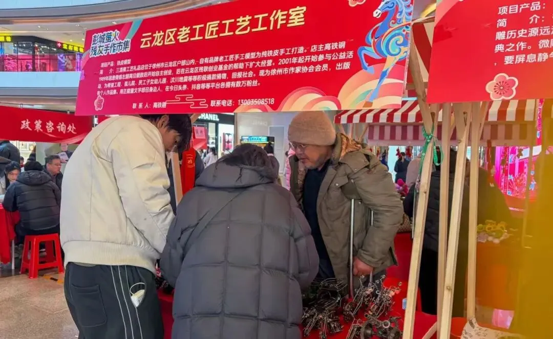 温情驱散寒意,服务点亮希望。1月31日,由徐州市残疾人联合会、徐州市人社局联合主办,徐州市残疾人综合服务中心、徐州市人力资源和公共就业管理中心、徐州英才网承办,徐州苏宁广场协办的2026年春风行动就业援助季残疾人专场招聘暨就创业产品展示展销活动,在苏宁广场北通道圆满落下帷幕。活动以“精准帮扶、赋能助残”为核心,通过“招聘对接+成果展销+多元服务”的融合模式,为残疾人朋友搭建起展示自我、对接机遇、拥抱希望的暖心平台,让这个冬日涌动着就业帮扶的暖流。