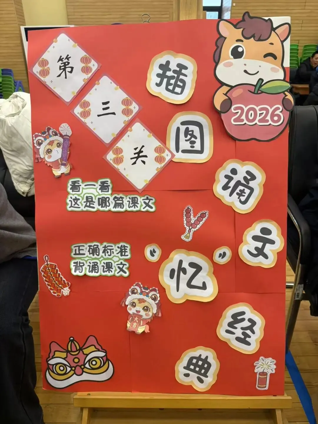 以课文插图为趣味支架,老师们将课本中的经典语段、优美词句与生动插图相融,搭建起图像与文本的联结桥梁。闯关现场,孩子们循着插图的线索,凝神回忆课文内容,自信地诵读经典语段,在看图忆文、诵典积累的过程中,不仅深化了对文本内容的理解,更将优美的语言素材悄悄积淀于心。