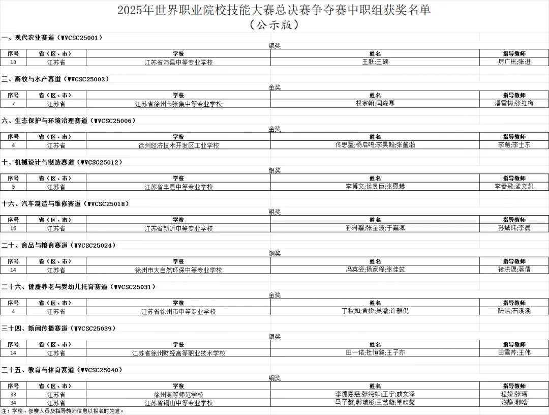 附件:1.2025年世界职业院校技能大赛总决赛争夺赛中职组获奖名单(公示版).xlsx