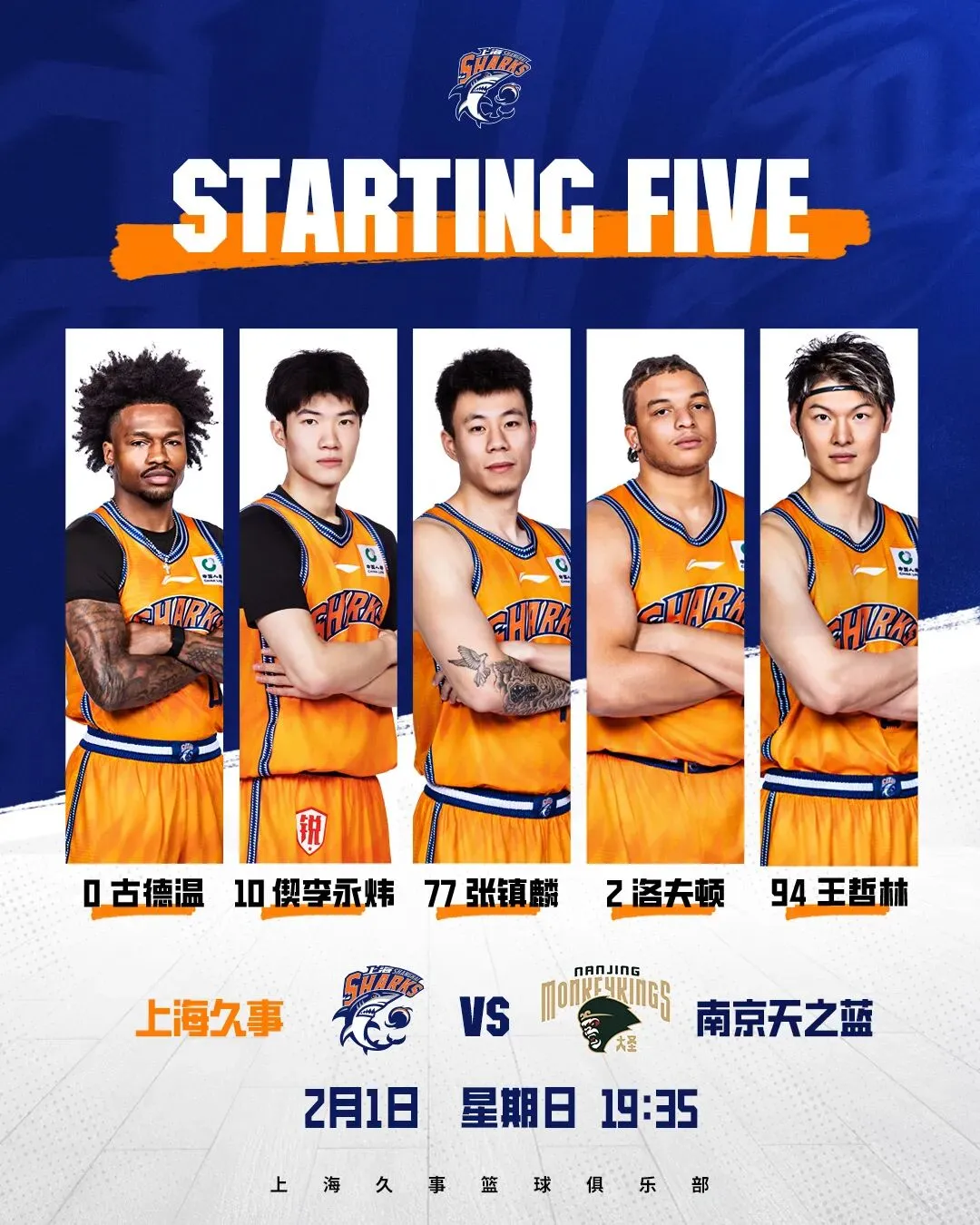 2026年2月1日,2025-2026赛季CBA联赛常规赛第22轮,上海久事114-80南京天之蓝,收获三连胜。