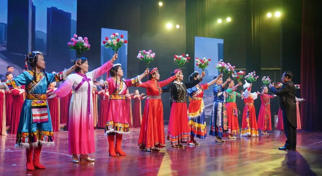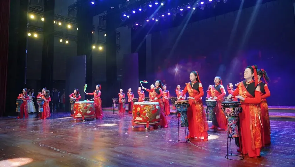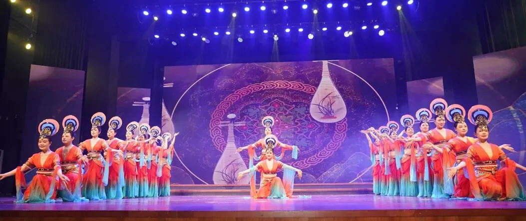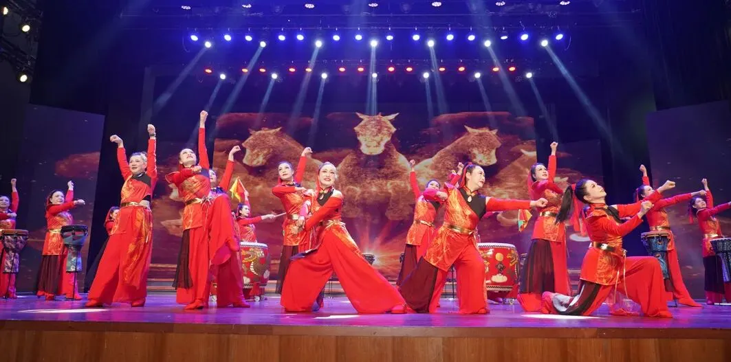演出在激昂澎湃的鼓舞《万马奔腾》中拉开序幕。随后,《敦煌之梦》《抬花轿》《忆往昔·剪影流芳》等精彩节目轮番上演。整场晚会融合舞蹈、戏曲、合唱、模特走秀、音乐快板、情景朗诵、情景剧等多种艺术形式,既彰显了中华优秀传统文化的深厚底蕴,又洋溢着鲜明的地域特色与时代气息。现场掌声不断,气氛热烈。