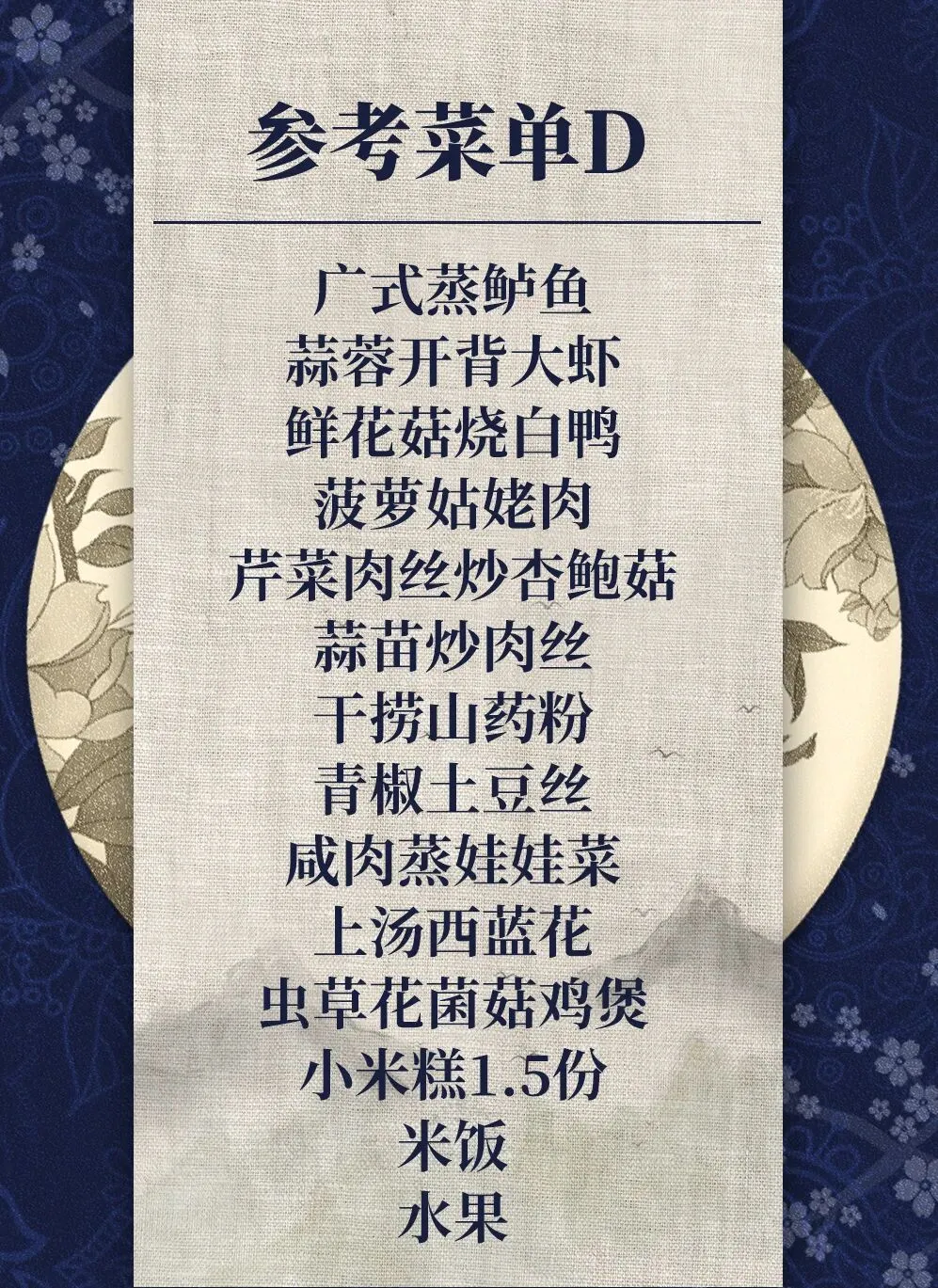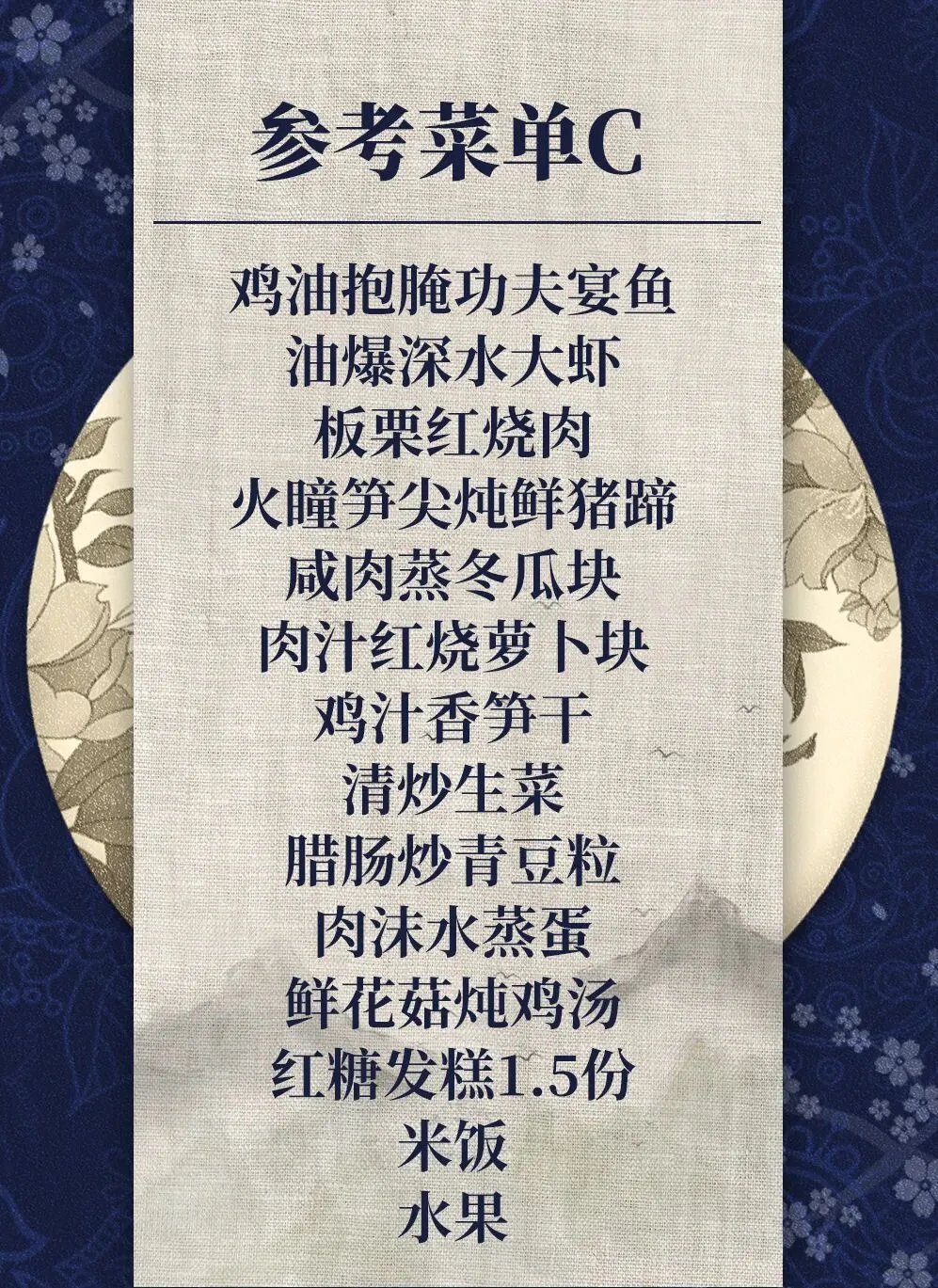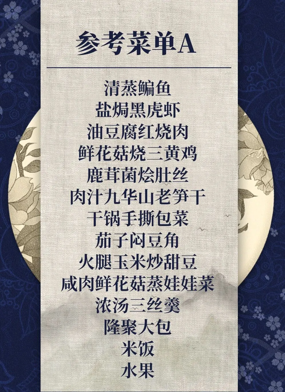 8;10人一桌10菜1汤。因考虑到食品安全问题,一律不代加工食物。