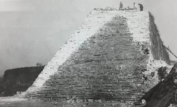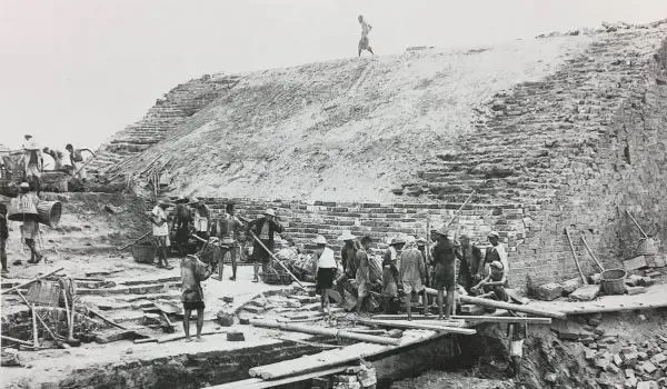 当年工人们正在搬运从金川门段城墙拆下的城砖