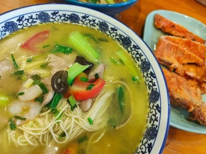 早上去吃面,别找那些装修豪华的大店,往巷子里钻。看到哪家店门口停满电动车,本地人端着碗蹲在路边吃,那准没错。点一碗蕈油面,蕈油是用虞山上的松树蕈熬出来的,香气特殊,有点像肉味,但比肉更清爽。面条细而有韧劲,吸溜一口,满嘴都是山野的鲜气。