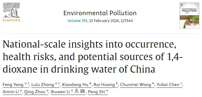 导语:环境科学期刊Environmental Pollution(IF=7.3,JCR一区)近日发表一项题为“National-scale insights into occurrence, health risks, and potential sources of 1,4-dioxane in drinking water of China”的论文,揭示中国饮用水中1,4-二氧六环的全国分布格局与健康风险。