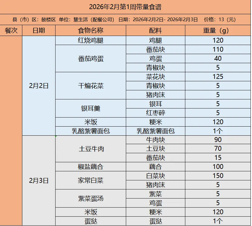 >徐州市大马路小学校2026年2月2号—3号带量食谱