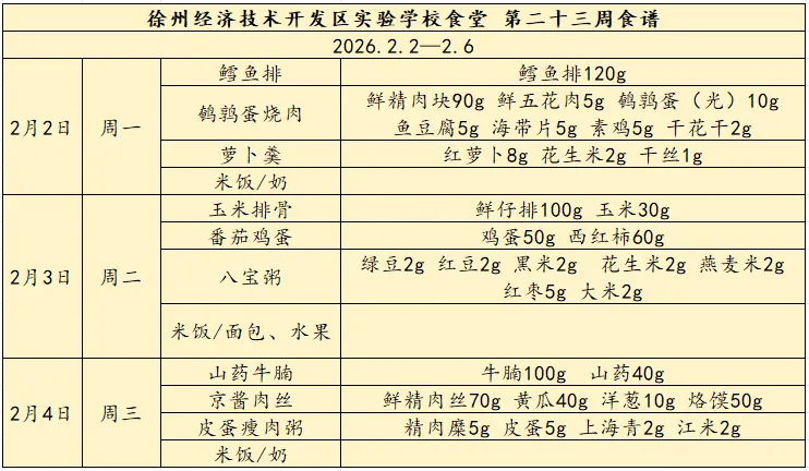 徐州经济技术开发区实验学校食堂第二十三周食谱