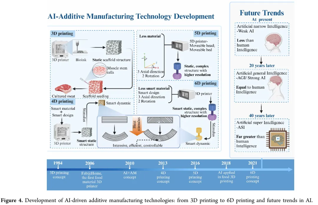 当前技术存在数据资源有限、模型迁移性差、计算成本高的问题,制约了 AI 与多维打印的深度融合;食品副产物可能含污染物(农药残留、过敏原),打印过程存在微生物污染风险,需建立严格的质量安全控制体系;5D/6D 打印面临设备成本高、专业人才短缺、规模化生产困难等障碍;消费者认知不足、监管框架不完善也影响技术商业化推广。