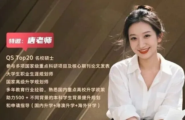 名师坐镇,保驾护航本次私享会的核心主讲人唐老师,拥有多年考研一线辅导经验,深耕考研命题规律与备考技巧研究,擅长结合历年考情拆解备考重点,针对不同专业、不同基础学子的备考痛点,给出可落地、高适配的复习方案,帮助数百名学子成功上岸目标院校,深受学员和家长的认可与信赖。