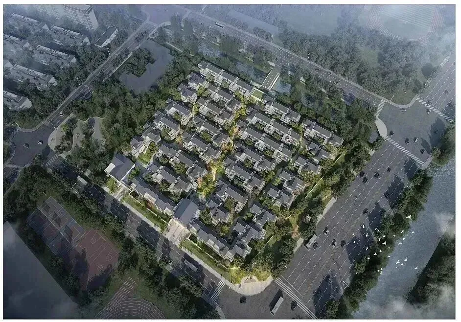 项目地块用途为城镇住宅用地,占地面积23110平,总建筑面积42180.50平,计容建筑面积23177.45平,容积率1.0。绿地率30.01%,建筑密度44.9%,层数1-3层,建筑高度14.07米。