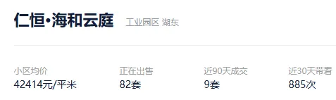 根据贝壳信息显示,仁恒·海和云庭目前82套挂牌出售,挂牌均价42414元/平。