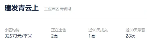 根据贝壳信息显示,建发青云上目前2套挂牌出售,挂牌均价32573元/平。