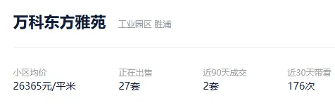 根据贝壳信息显示,万科东方雅苑目前27套挂牌出售,挂牌均价26365元/平。