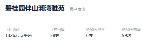 根据贝壳数据显示,今年以来,该社区成交了6套二手住房,套均成交面积126.17平,平均挂牌单套总价195万元,挂牌单价15469元/平,平均成交周期92天。
