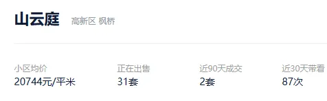 2025年,该社区成交了2套,挂牌均价为23300元/平。