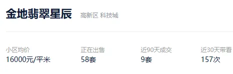 根据贝壳信息显示,金地翡翠星辰目前58套挂牌出售,挂牌均价16000元/平。