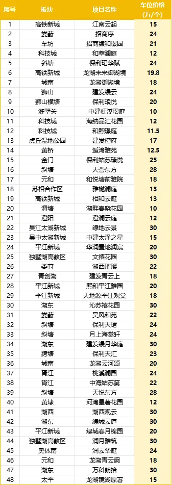 比车还贵?苏州最新车位价格地图出炉,园区核心区车位冲上30万!