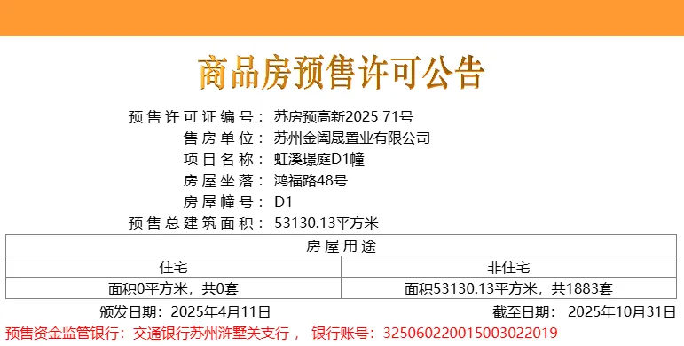 4月11日,高新区浒墅关板块的中建虹溪璟庭的1883个车位取证!
