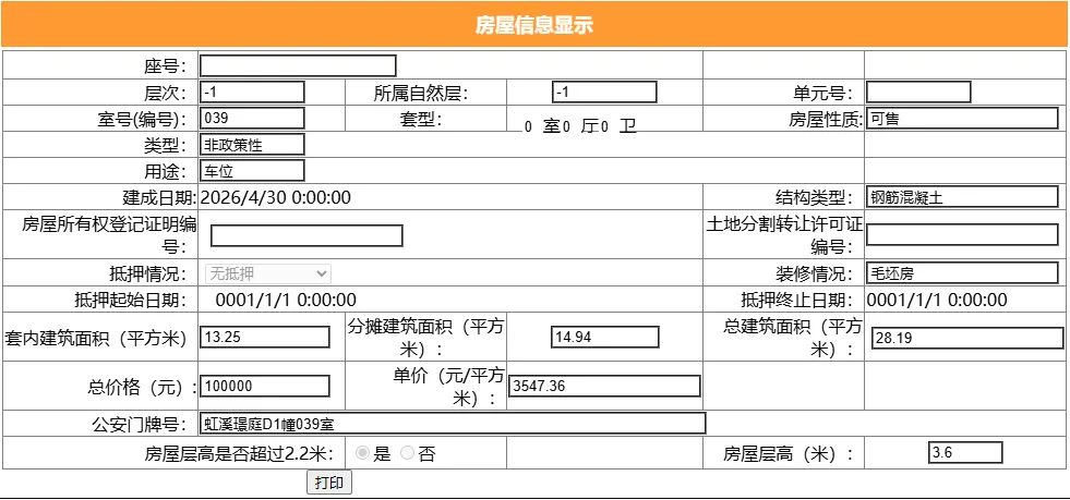 其车位总建筑面积28.19平,套内建筑面积13.25平,备案均价3547.36元/平,备案总价10万元。
