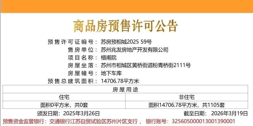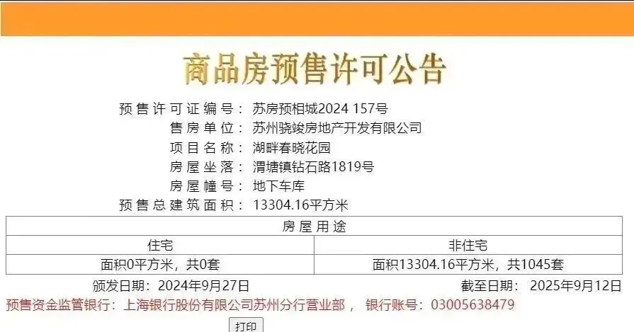 9月37日,相城区的湖畔春晓花园1045个车位取证!