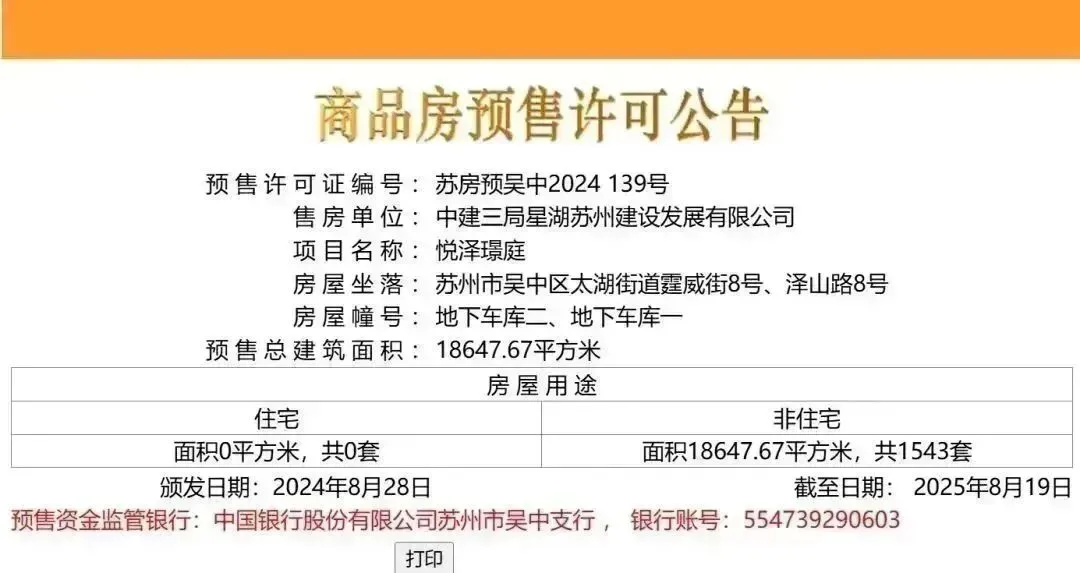 8月28日,吴中太湖新城的中建太泽之星1543个车位取证!