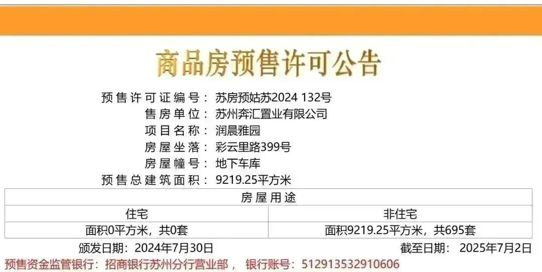 7月30日,姑苏平江新城的华润置业润宸695个车位取证!