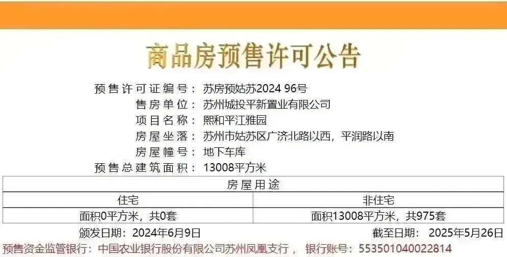 6月9日,姑苏区平江新城板块的熙和平江雅园975个车位取证!